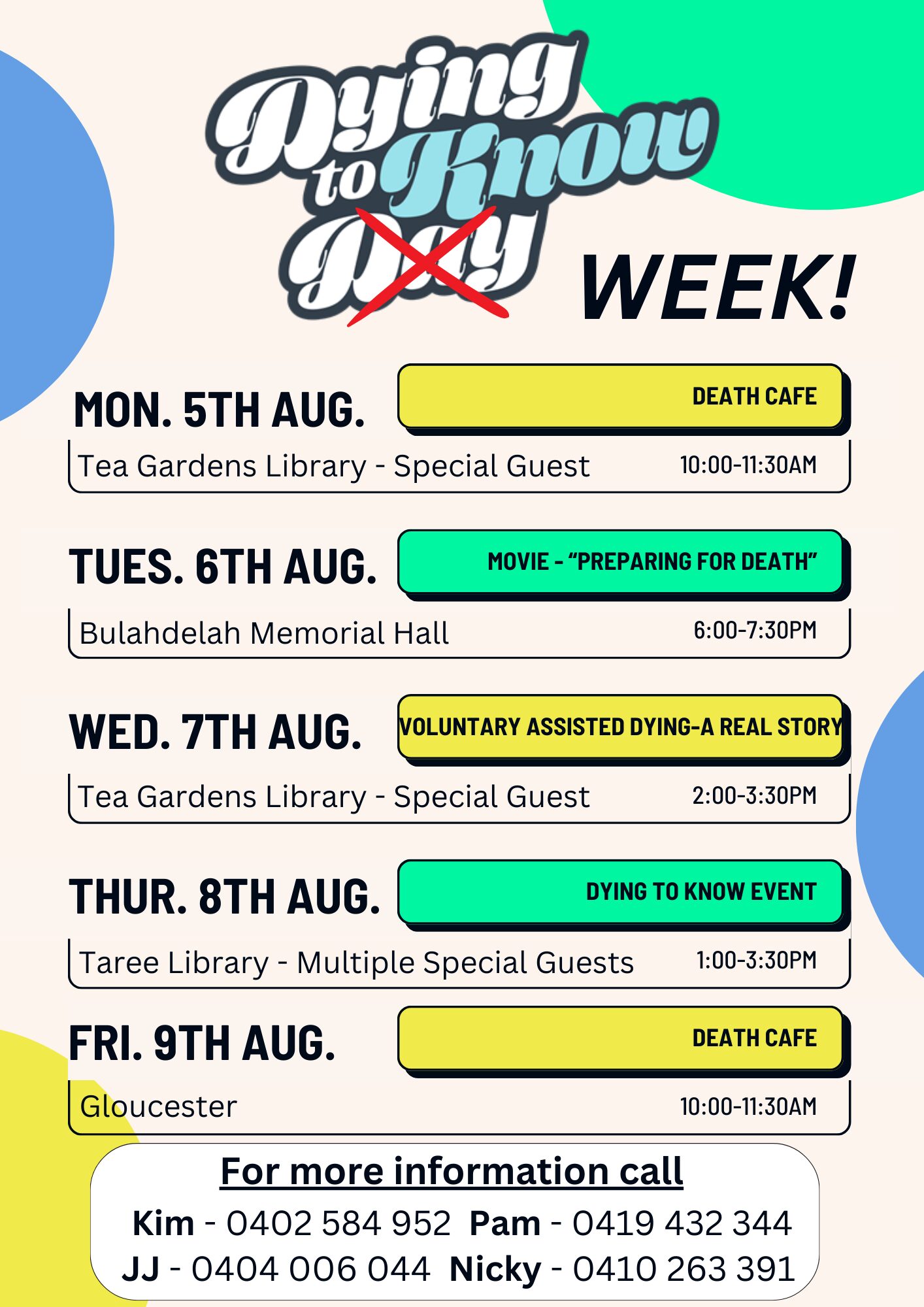 We will be premiering “Preparing for Death” at Bulahdelah Memorial Hall
