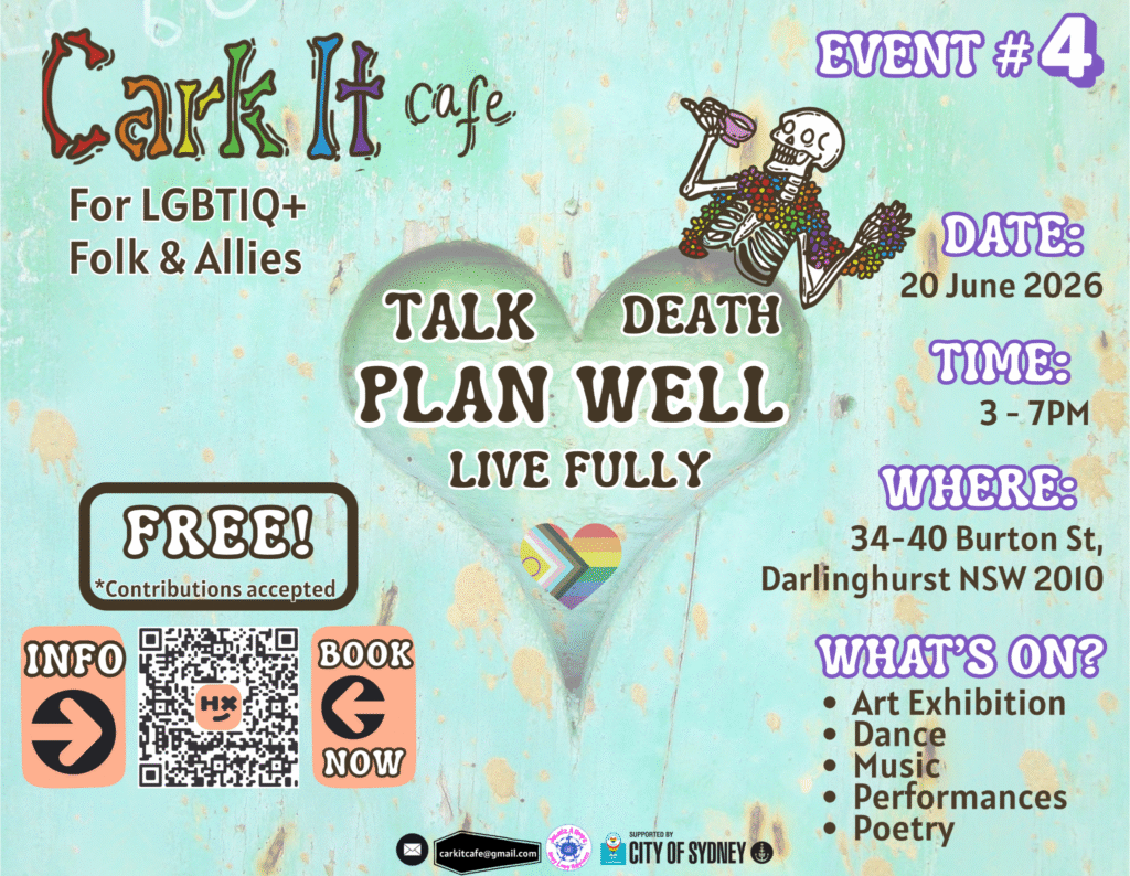 Please feel most welcome to join us at the beautiful mud brick building called ‘Earthcare’ located on the Cnr of Beef Cattle Road and Campus Drive at Hawkesbury’s UWS, Richmond, for Dying to Know Day 2024. Aside of being simply human, another thing we all have in common is that we are all going to die. The two most important aspects of life are birth and death…. what we do in between those very important markers, is simply living life however we choose to do that. So how have you prepared for your inevitable end? Do you have ideas but don’t know how to implement them? Do you want something unique and different to the handover to a funeral home? And what conversations have you had with your people about what you would like? Do you have an advanced life care plan in place or are you just leaving it up to others to sort it out for you (because that’s really tough on those trying to grieve their loss). Join us for open hearted conversations and awareness of options available to you and your families over morning tea.