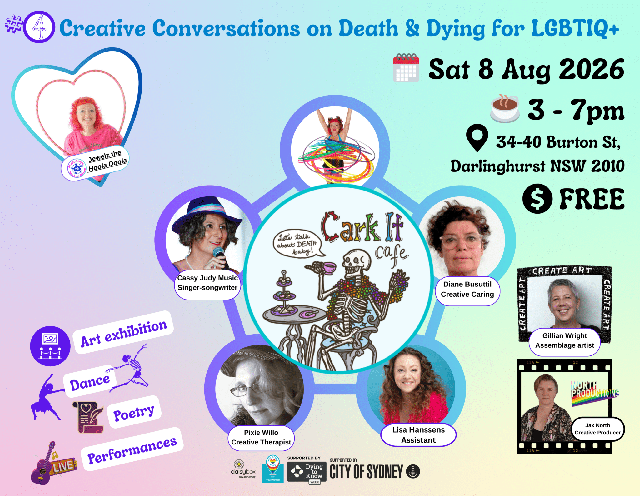 Cark-It-Cafe: Creative Conversations on Death & Dying for LGBTIQ+ : Event 3 of 4 Jun 20 Cark-It-Cafe: Creative Conversations on Death & Dying for LGBTIQ+ : Event 3 of 4 12:30 pm - 5:00 pm Free – $39