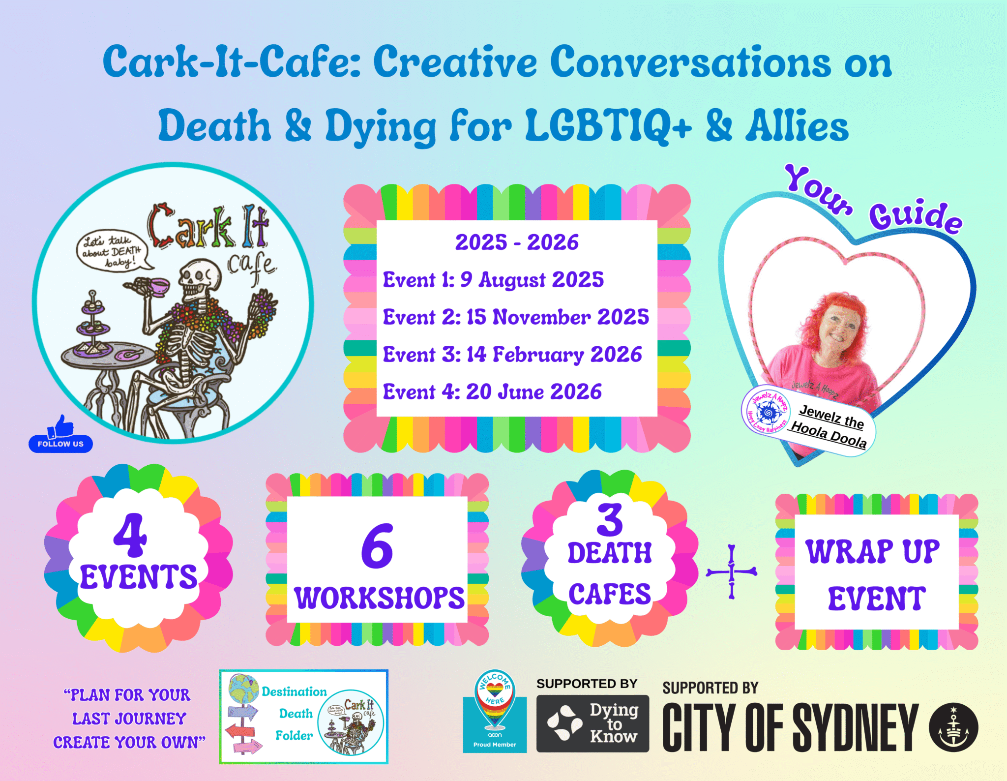 Cark It Café Creative Conversations on Death & Dying for LGBTIQ+ and Allies Aug 9 10:00 am - 4:30 pm Cark It Café Creative Conversations on Death & Dying for LGBTIQ+ and Allies Free – $39.00